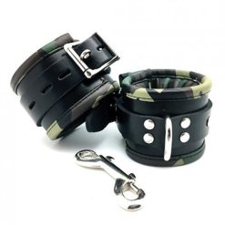Sensual Sin Leather Padded Wrist Cuffs Camo Piping