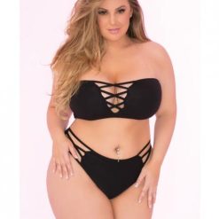 Pink Lipstick Truth Or Bare 2 Piece Bra Set Black 1X