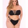 Pink Lipstick brings you the summer! The set consisting of a net top and a net string is made of nylon and sits almost like a second skin, the embroidery of hemp leaves leaves Festival feelings arise. The special highlight: Your new set shines in the black light!Color: Green1X/2X – Size 16-18. Cup D/DD. Bust 35-38 inches. Waist 36-40 inches. Hip 45-48 inches
