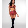 Dreamgirl Sexy Maid to Tease French Maid Lingerie Costume Set: Lace Garter Apron, Thong, Maid Cap, Choker Necklace and Feather Tickler. Lace apron with ruffle details, attached elastic garters, adjustable criss-cross back straps and ribbon waist tie. Matching lace g-string, maid cap, neck ribbon and feather tickler included. Shown with thigh high stockings, not included. Sold separately.