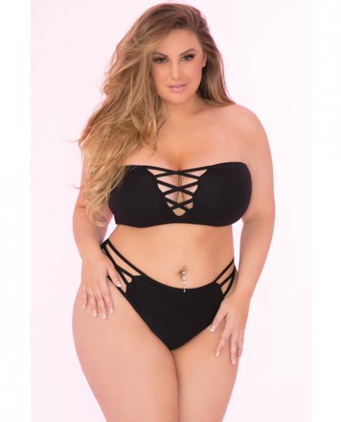 Pink Lipstick Truth Or Bare 2 Piece Bra Set Black 1X